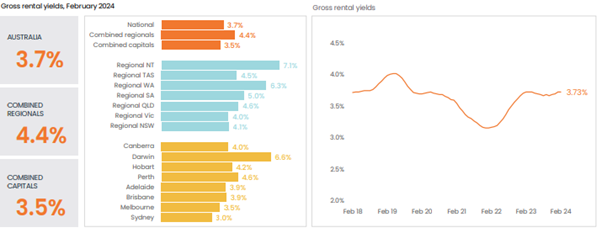 At 3.73%, national gross rent yields are now roughly in line with pre-COVID levels (3.71%) and are 57 basis points above the recent lows recorded in January 2022(3.16%). Compared to last year, rental yields rose across Darwin and Melbourne, held steady in Sydney and fell in Brisbane, Adelaide, Perth, Hobart and Canberra.